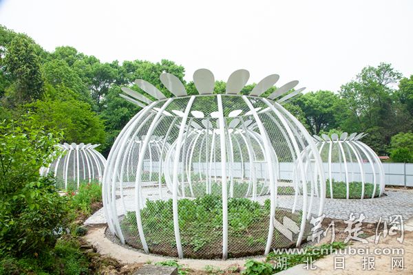 今年,武漢植物園對罌粟籠子進行改造。原來的黑色大鐵籠被拆除,五個白色的罌粟果實狀籠子成為罌粟新“關(guān)押地”?;\子為罌粟蒴果樣式,形狀為圓潤的球形,高低不一,矮的籠子3米左右,高的6米有余,錯落有致地坐落在本草園中部。五個籠子面積共200平方米,種植罌粟470株。武漢植物園根據(jù)罌粟的顏色和瓣型將罌粟分籠種植。5個籠子分別種植了單瓣紅色、單瓣紫色、單瓣白色、重瓣以及混色的罌粟。除了常見的紫色、紅色罌粟,還展示了白色、粉色、雜色罌粟,共10余種花色。
