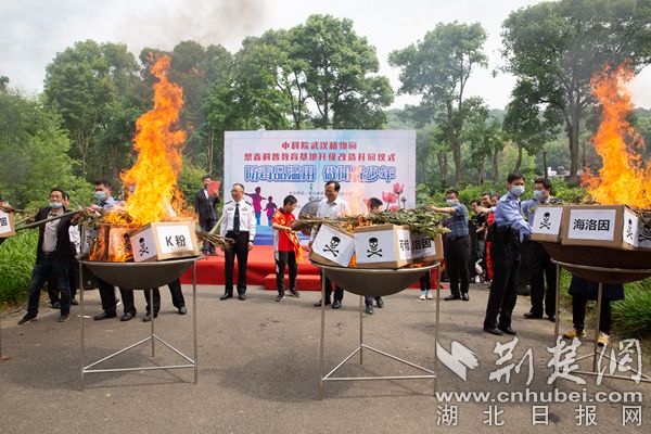 荊楚網(wǎng)(湖北日?qǐng)?bào)網(wǎng))訊(通訊員陳長(zhǎng)麗)5月21日上午,中科院武漢植物園舉行了禁毒科普教育基地升級(jí)改造開園儀式。經(jīng)過(guò)半年的升級(jí)改造,全新的罌粟活體展示區(qū)揭開面紗,升級(jí)后的禁毒教育基地在毒品原植物的展示和禁毒教育的形式上將更加豐富。正值國(guó)際禁毒日到來(lái)之際,現(xiàn)場(chǎng)還舉行了“防毒品濫用,做陽(yáng)光少年”為主題的禁毒宣教活動(dòng),在社會(huì)公眾的見(jiàn)證下,青少年代表焚燒罌粟,向毒品說(shuō)“不”。