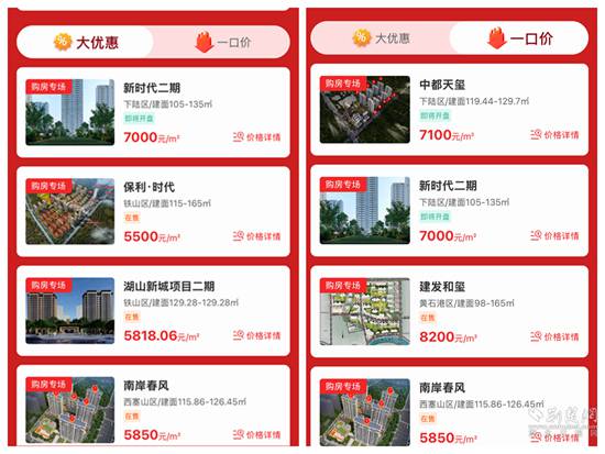 線上,該市在東楚優(yōu)房APP上,開辟“‘宜居黃石’春節(jié)返鄉(xiāng)安居”購房專版,各房地產開發(fā)項目按照自愿原則拿出房源,下設“一口價”和“大優(yōu)惠”2個專欄?!耙豢趦r”專欄集中展示特價房源;“大優(yōu)惠”專欄集中展示特價房外的其它優(yōu)惠房源。