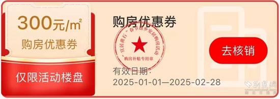 值得注意的是,此次專場活動的“購房優(yōu)惠券”僅限在參與本次專場“大優(yōu)惠”活動的房地產項目房源中使用,不能同時參與“一口價”優(yōu)惠活動?!百彿績?yōu)惠券”僅限在2025年1月1日至2月28日期間使用,逾期未使用則自動失效。