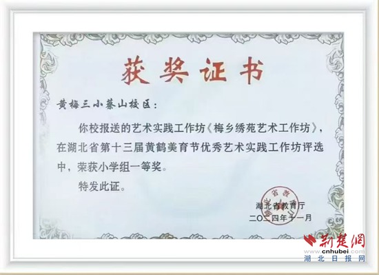 不完全統(tǒng)計,17年來,蔡山鎮(zhèn)中心小學共培養(yǎng)“繡娘”3000余人,挑花作品在省級評選中多次獲得金、銀、銅獎,學校被黃梅縣授予“黃梅挑花傳承基地”稱號。