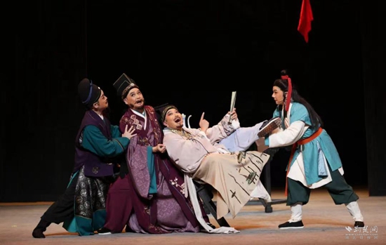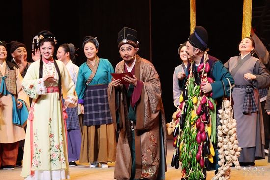 演出現(xiàn)場,現(xiàn)場觀眾的情緒隨著劇情的推進(jìn)而起伏跌宕。戲中臺(tái)詞頻繁出現(xiàn)的小南街、魚面、挑花、五祖寺、紫云山茶等極具地方特色的文化元素令人拍案叫絕;“將么解”“嚼爛飯”等方言俚語穿插在對白唱詞中,引得觀眾捧腹大笑。當(dāng)《梅城煙雨》的最后一個(gè)音符落下,全場觀眾的掌聲隨之響起。演出結(jié)束后,觀眾仍沉浸在藝術(shù)的余韻中,紛紛表示這不僅是一場視聽盛宴,更是一次心靈的洗禮。