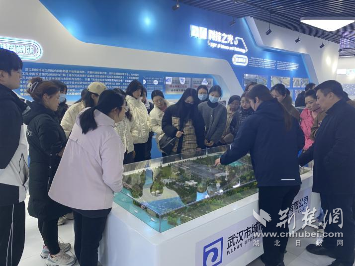 走進北湖污水處理廠,現(xiàn)代化設(shè)施井然有序。水流穿管而過,光伏板鋪展在廠區(qū)上方。廠黨支部副書記夏可向?qū)W員們介紹了項目建設(shè)與運營情況。這一工程是武漢“四水共治”和“長江大保護”的重要支點,具備日處理80萬噸污水、服務(wù)超過240萬人的能力。通過“光伏+水務(wù)”“污水再生利用”等模式,北湖廠展示了生態(tài)文明建設(shè)的創(chuàng)新路徑。