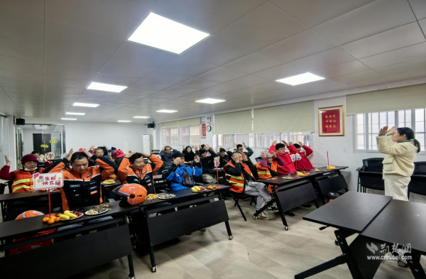 溫馨的生日儀式將活動(dòng)推向高潮。當(dāng)插著蠟燭的生日蛋糕被緩緩?fù)浦林醒耄驹刚邽槊课粔坌谴魃峡蓯鄣纳彰?。燭光搖曳中,全場齊聲唱響《生日快樂》,壽星們閉目許下心愿,并一同切開象征甜蜜與祝福的蛋糕。隨后的茶話交流環(huán)節(jié),大家圍坐分享美食與姜茶,幾位戶外工作者代表講述了他們在寒冬中堅(jiān)守崗位的溫暖點(diǎn)滴,話語中透著質(zhì)樸的擔(dān)當(dāng)與堅(jiān)持。