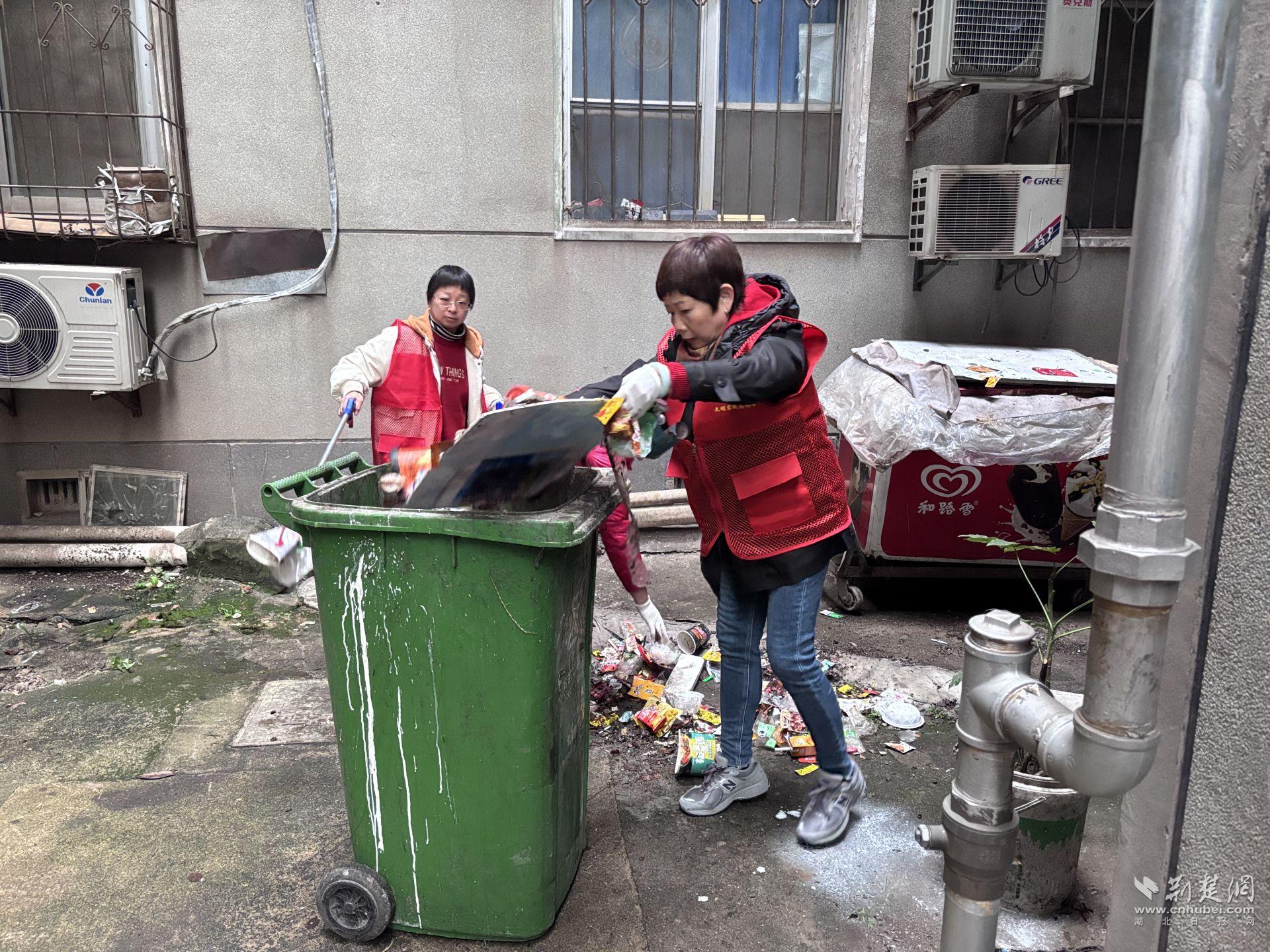 志愿隊清理社區(qū)垃圾。