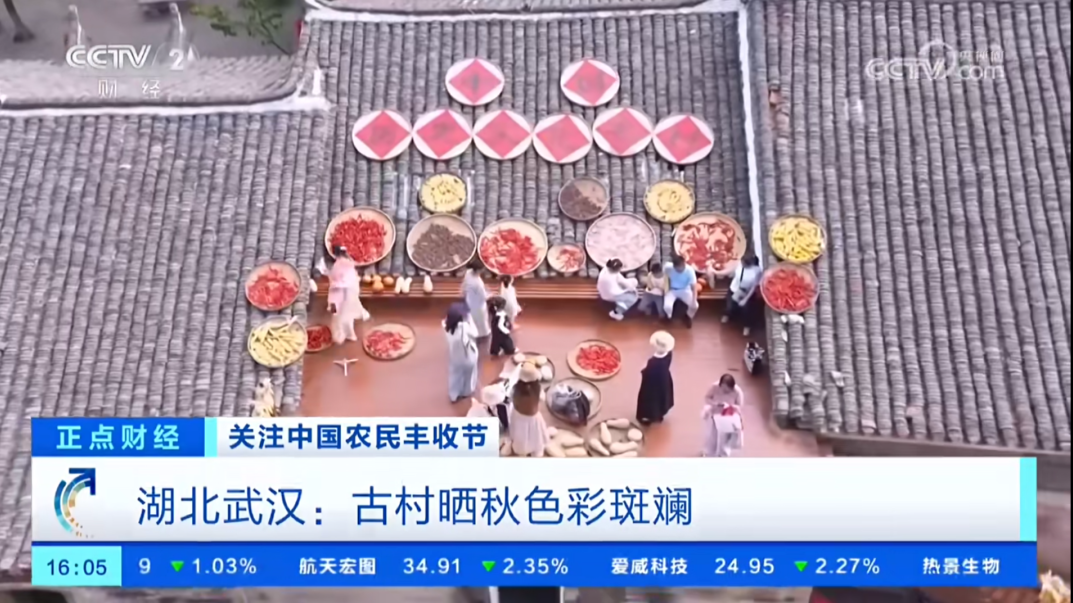 9月23日:CCTV-13《新聞直播間》、CCTV-4《中國新聞》、CCTV-2《正點財經(jīng)》、CCTV-1《晚間新聞》多個央視頻道聚焦黃陂大余灣,生動呈現(xiàn)一幅“曬秋”與稻田收割交織的豐收盛景。