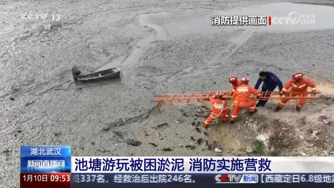 1月10日:CCTV-13《新聞直播間》報道黃陂消防救援大隊對池塘游玩被困淤泥者實施營救。