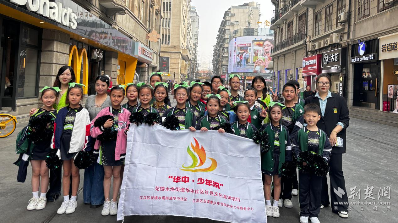 一群孩子站在老建筑前,用并不稚嫩的語氣講述城市的過往;他們談江漢關、談中山大道,也談這片街區(qū)如何一步步走到今天。聽眾中有游客,有商戶,也有在這里生活了幾十年的老人。