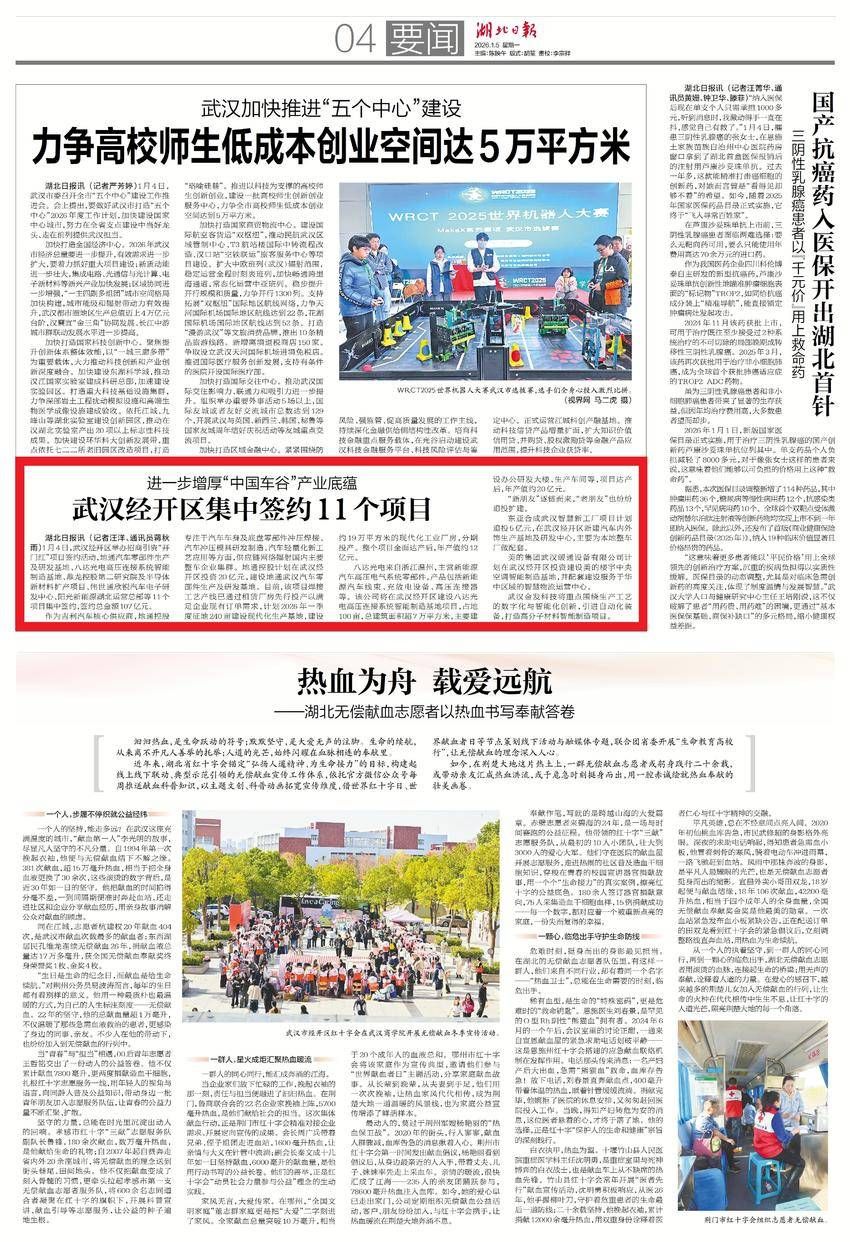 1月5日,湖北日?qǐng)?bào)要聞版報(bào)道:進(jìn)一步增厚“中國(guó)車(chē)谷”產(chǎn)業(yè)底蘊(yùn) 武漢經(jīng)開(kāi)區(qū)集中簽約11個(gè)項(xiàng)目