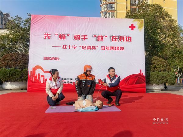 荊楚網(wǎng)(湖北日?qǐng)?bào)網(wǎng))訊(通訊員 王瑜婷)1月15日,武昌區(qū)南湖街道寶安社區(qū)開展“先‘蜂’騎手,‘救’在身邊——紅十字‘輕騎兵’馬年再出發(fā)”主題活動(dòng)。市、區(qū)紅十字會(huì)及南湖街道相關(guān)負(fù)責(zé)人,外賣、快遞小哥代表齊聚現(xiàn)場(chǎng),共同見證這支由新就業(yè)群體組成的紅十字“輕騎兵”志愿服務(wù)隊(duì)再啟新程。