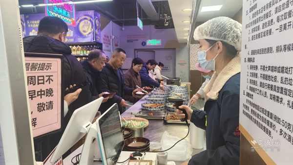 荊楚網(wǎng)(湖北日報網(wǎng))訊(記者 李燕 通訊員 羅嘉柯)“現(xiàn)在中午不用自己開火了,9塊9就能吃上三四個熱菜,還能和老鄰居聊天,比家里還熱鬧! ”70歲的王奶奶邊說邊跟著隊(duì)伍取餐。家長里短的閑談聲混著檔口的飯菜香,讓武昌區(qū)南湖街道的中商超市“幸福食堂”滿是煙火氣。