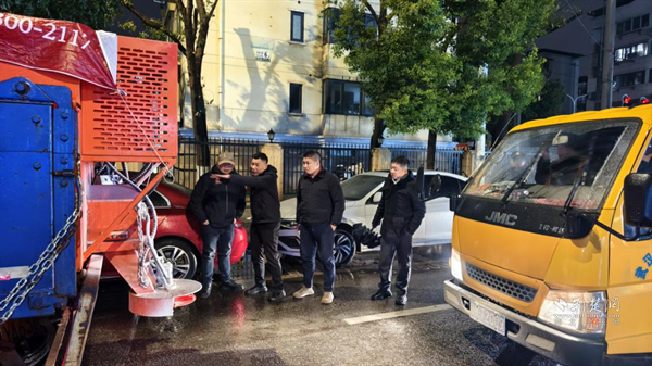 街道嚴(yán)格落實24小時應(yīng)急值班制度,一方面組織執(zhí)法隊員加強路面動態(tài)巡查,及時排查處置積雪壓枝、招牌松動等安全隱患;另一方面,環(huán)衛(wèi)隊伍持續(xù)開展夜間撒鹽防凍和巡查清理作業(yè),防止道路夜間結(jié)冰,確保次日清晨通行安全。
