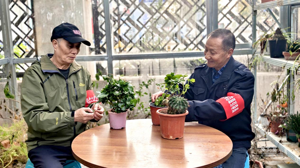 作為“春天鄰里服務(wù)隊(duì)”發(fā)起人之一和支部老黨員,周榮良是看著這些變化一點(diǎn)點(diǎn)發(fā)生的。最早動(dòng)員大家時(shí),他領(lǐng)著幾位老黨員,挨家挨戶敲門,話也說(shuō)得實(shí)實(shí)在在:“咱們一起試試,先清出一小塊地也行?!庇腥丝?,有人問(wèn),可更多的鄰居還是打開了家門——退休的居民搬出了家里不用的花盆;做水電工的師傅答應(yīng)幫忙安裝澆水的水管;連剛上學(xué)的小孩子,也捧來(lái)了自己養(yǎng)的小多肉。