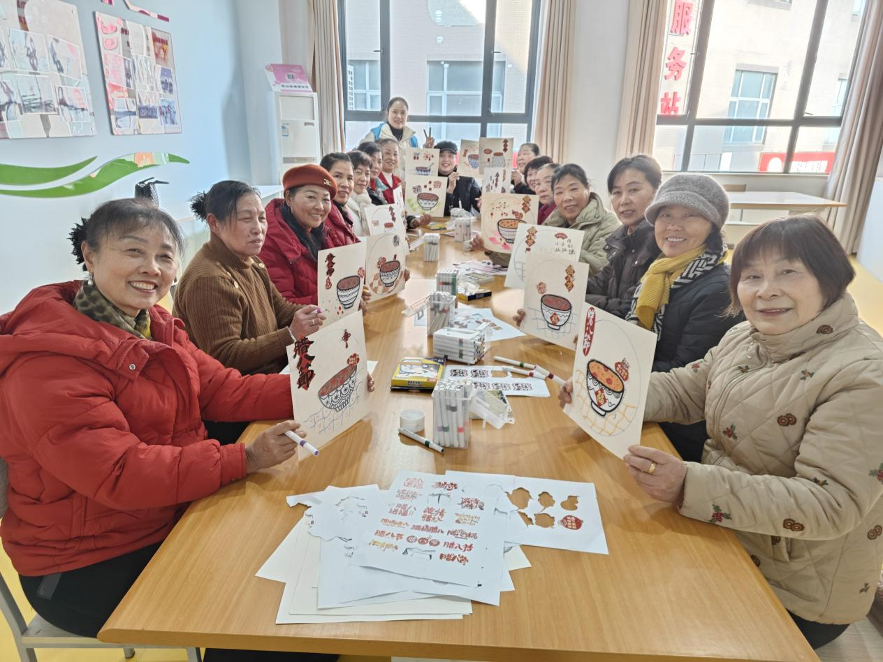 社區(qū)老年人活動(dòng)中心內(nèi),老人們圍坐在一起體驗(yàn)“溫情臘八”手工繪畫(huà),在創(chuàng)作中增進(jìn)鄰里情誼。“好多年沒(méi)畫(huà)過(guò)畫(huà)了,今天好像回到了年輕時(shí)候!”74歲的李庭香老人舉著自己剛完成的《臘八團(tuán)圓圖》笑著說(shuō)道。