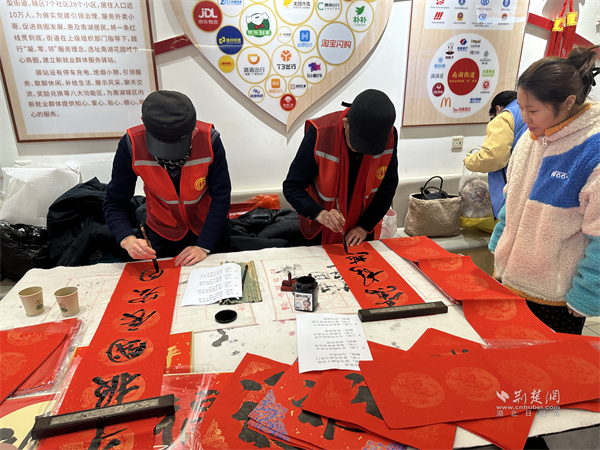 活動(dòng)現(xiàn)場(chǎng)張燈結(jié)彩,福字、春聯(lián)相映成趣,處處洋溢著喜慶祥和的節(jié)日氣息。書(shū)法志愿者現(xiàn)場(chǎng)揮毫潑墨,一筆一畫(huà)寫下新春祝福,一幅幅寓意吉祥的春聯(lián)與福字深受大家喜愛(ài),戶外勞動(dòng)者們駐足欣賞、挑選心儀對(duì)聯(lián),在墨香中提前感受春節(jié)的儀式感。