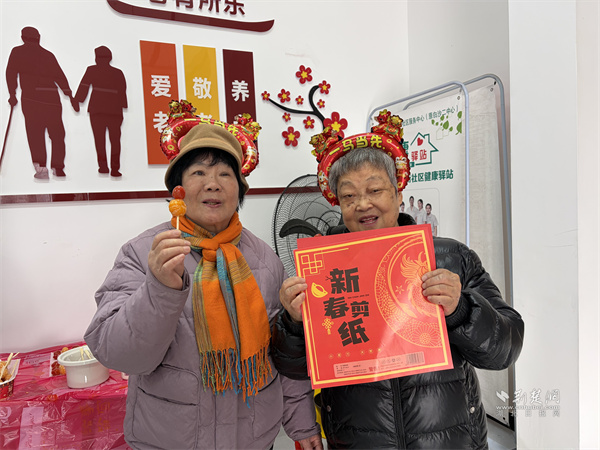 “金曲聯(lián)唱”環(huán)節(jié),長(zhǎng)者們齊唱《恭喜恭喜》《新年好》等經(jīng)典曲目,熟悉的旋律勾起共同記憶,現(xiàn)場(chǎng)歡聲笑語(yǔ)不斷?!肮蚕砟旮!杯h(huán)節(jié)將氣氛推向高潮,長(zhǎng)者們精心創(chuàng)作的窗花和春聯(lián)作品引得陣陣贊嘆。大家互道新春祝福,拍攝“全家?!贝蠛险?,定格團(tuán)圓溫暖瞬間。