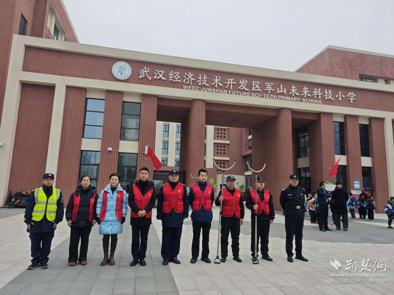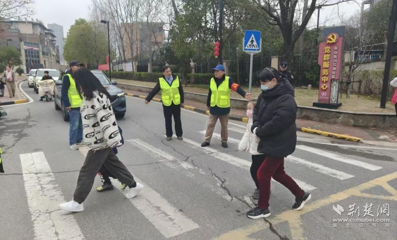 荊楚網(wǎng)(湖北日報網(wǎng))訊(通訊員 吳曉琪、楊慕曦、曹悅、黃盈)春風(fēng)送暖,開學(xué)啟航。3月4日,2026年春季新學(xué)期開學(xué)第一天,武漢經(jīng)開區(qū)軍山新城蒲潭社區(qū)、龍湖社區(qū)、小軍山社區(qū)、川江池社區(qū)同步啟動春季開學(xué)護(hù)學(xué)專項行動,聯(lián)動社區(qū)志愿者、民警、物業(yè)等多方力量,在學(xué)校周邊引導(dǎo)接送車輛即停即走,護(hù)送學(xué)生安全通過馬路,及時排查消除各類安全隱患,用實際行動為孩子們筑起了一道安全的“防護(hù)墻”,為廣大師生營造了安全、有序、暢通的入學(xué)環(huán)境。