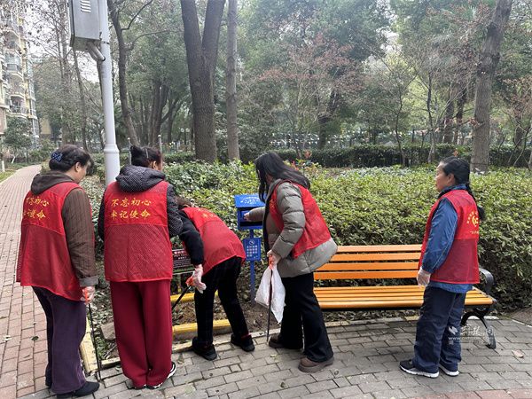 活動現(xiàn)場,全體人員齊聲合唱《學(xué)習(xí)雷鋒好榜樣》,激昂旋律點燃奉獻(xiàn)熱情。志愿者們分工協(xié)作、有序行動,一組擦拭樹木認(rèn)養(yǎng)牌、更換嶄新標(biāo)簽,為樹木明確“身份標(biāo)識”,增添護(hù)綠責(zé)任;另一組擦拭公共休閑椅、科普設(shè)施及兒童游樂設(shè)施,讓公共空間潔凈如新。