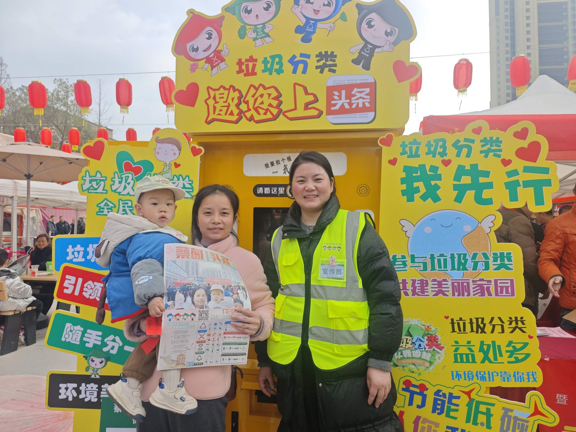 現(xiàn)場還設置文明實踐宣傳點,蔡甸區(qū)委宣傳部志愿者向居民發(fā)放文明餐桌、移風易俗宣傳冊。蔡甸區(qū)城市管理執(zhí)法局創(chuàng)新運用“AI文明拍報機”宣傳垃圾分類知識,引導居民踐行“武漢以我為榮”文明素養(yǎng)提升行動。“這個形式太有意思了,這份專屬的‘文明頭條’報紙,在趣味體驗中就深化了垃圾分類、文明公約等知識記憶?!睅е⒆訁⑴c的張女士興奮地展示著頭條報紙。