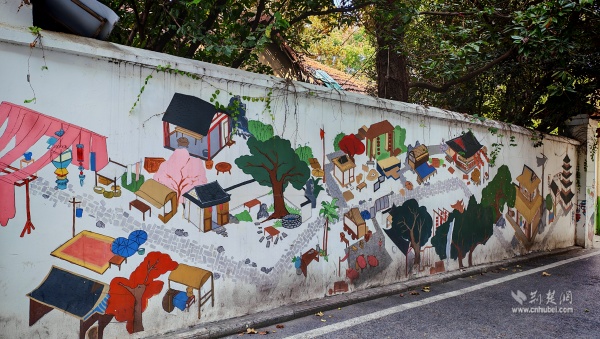 社區(qū)黨委以文化為著力點,以“微改造、精提升”為路徑,探索打造古今交融、文旅共生的“宜游”社區(qū)。從九龍井正街到先賢街,藏在居民樓中、電線桿上的明楚王府文化彩繪與武昌古城元素相得益彰,地名文化墻以漫畫形式述說老街往事,生動展示社區(qū)文化遺存和老街古巷歷史。各色花卉綠植與武漢主題創(chuàng)意打卡裝置珠玉其間,形成“幾步一景”的游覽體驗。