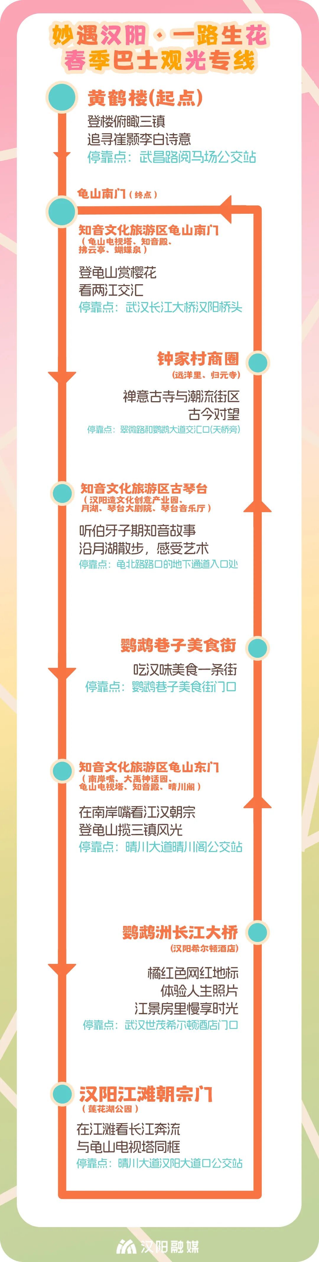 △“妙遇漢陽·一路生花”春季巴士觀光專線線路圖。