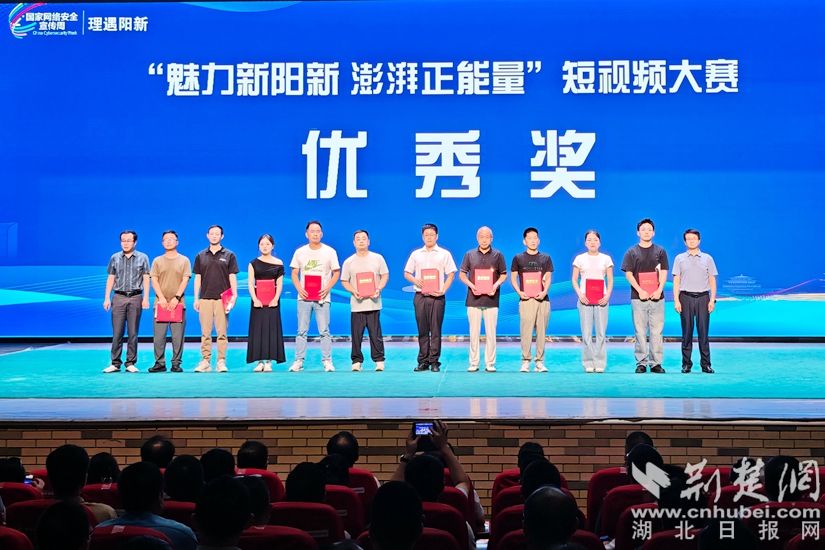 啟動(dòng)儀式上,頒發(fā)"魅力新陽新 澎湃正能量"短視頻大賽一等獎(jiǎng)。