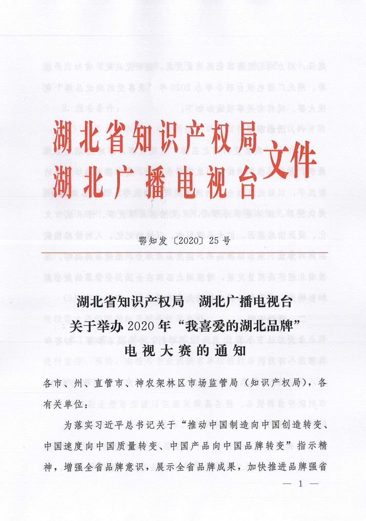 金秋十月,由湖北省知識產權局、湖北廣播電視臺主辦,湖北省知識產權發(fā)展中心、湖北廣播電視臺電視綜合事業(yè)部承辦的“2020我喜愛的湖北品牌電視大賽”正式啟動。